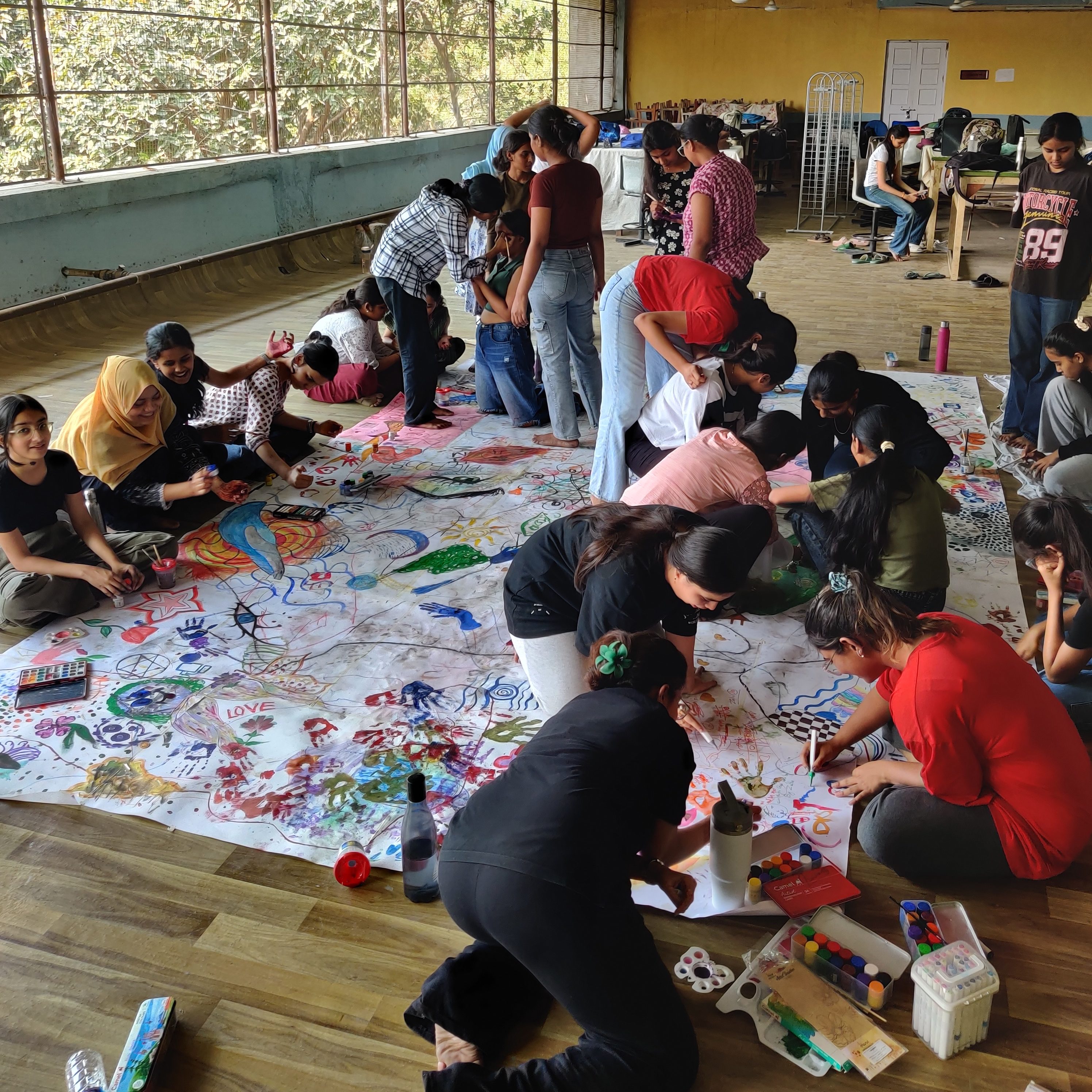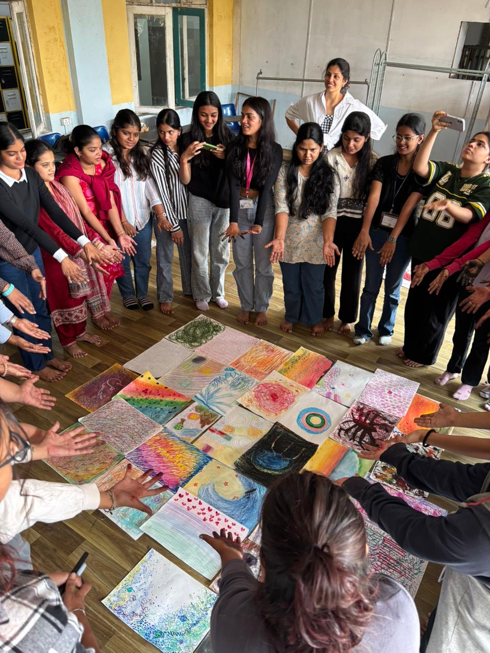 These group based art workshops are facilitated across colleges, institutions and retreats, creating safe environments for embodied expression through art, movement and play.
